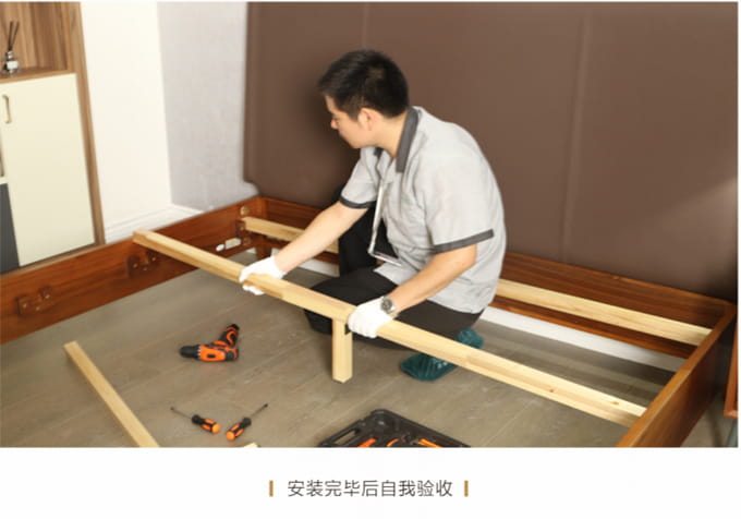 安装并检查完所有工作后,需与客户清点并确认产品,将所有带电源的家具插上电源,告知客户家具使用方法和功能及保养知识、注意事项等。所有带功能的产品需演示给客户看。例: